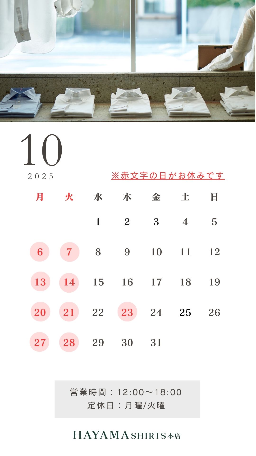 10月の営業日のご案内